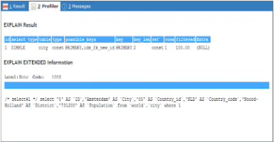 SQLyog Ultimate incluye una herramienta para perfilar las consultas SELECT ejecutadas. La herramienta muestra: